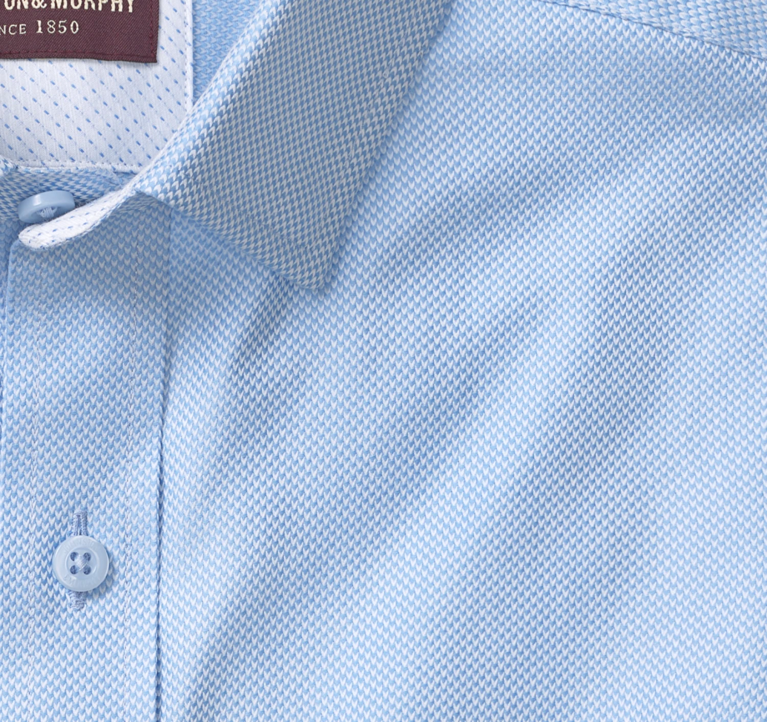 - Point collar with hidden buttons for stay-in-place smoothness.Â