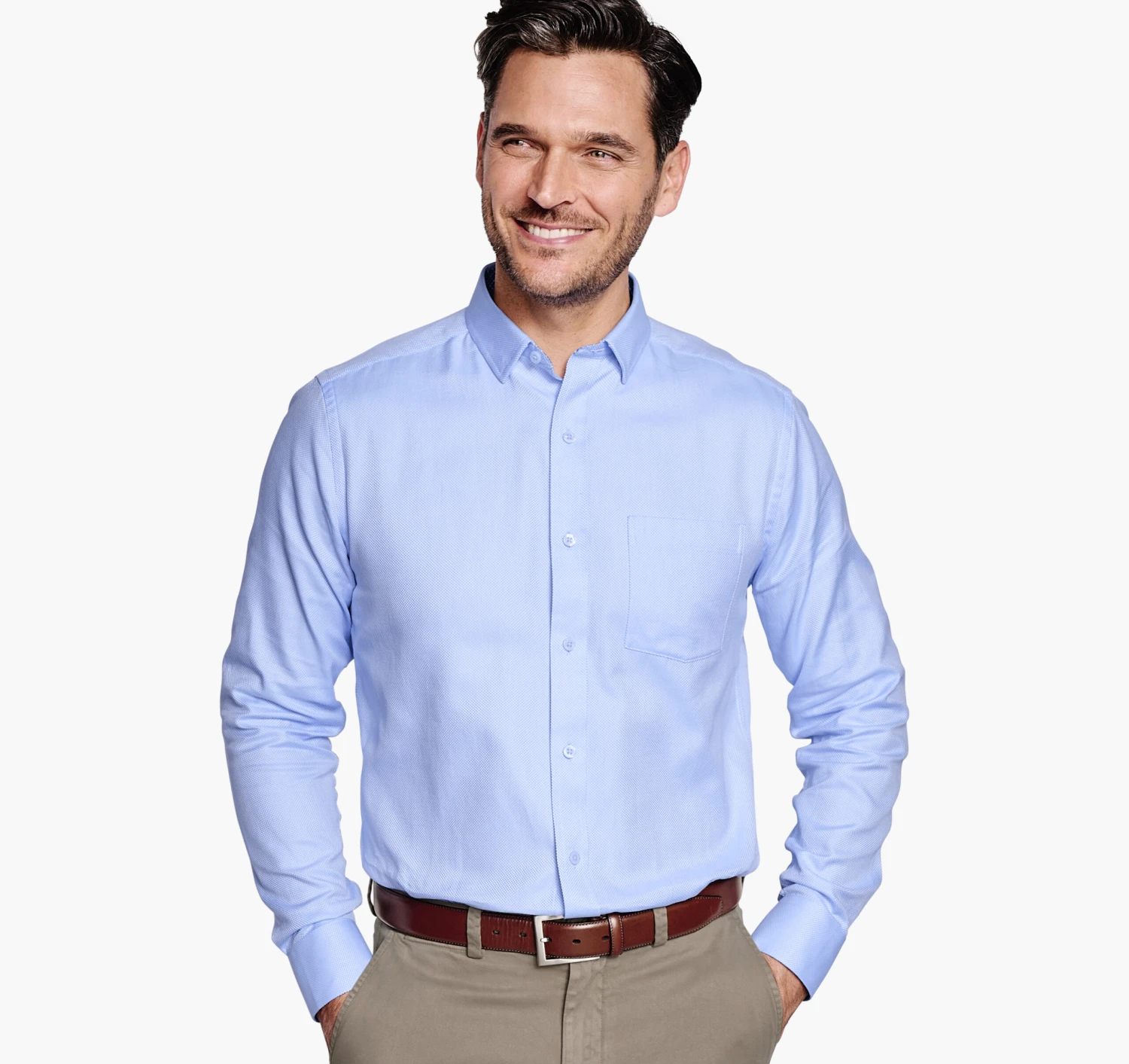- An expansive wardrobe of textured and solid dress shirts in versatile patterns.