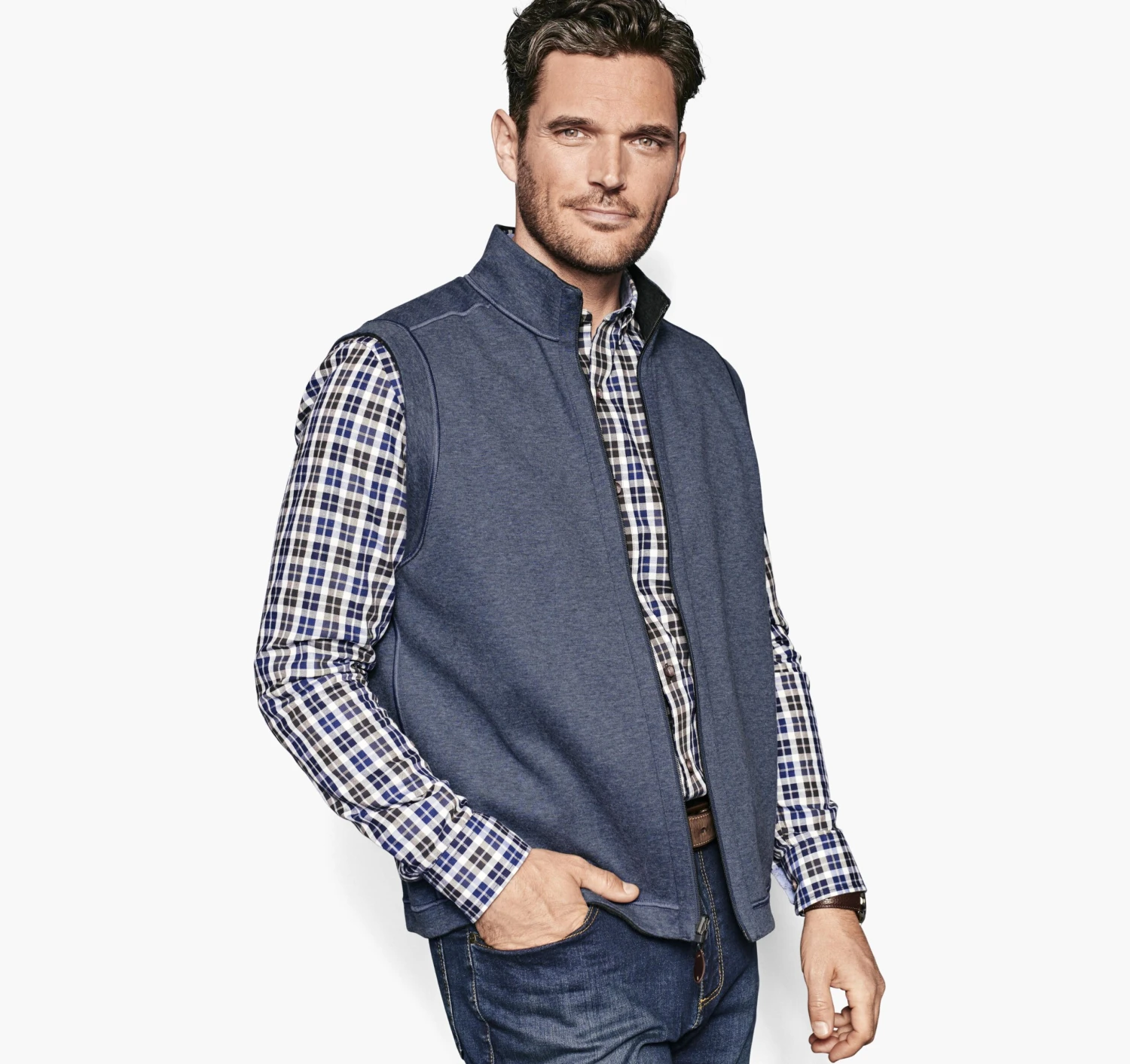 - Zips over shirts, under jackets, and reverses from solid to contrast heathered shade for extra options.