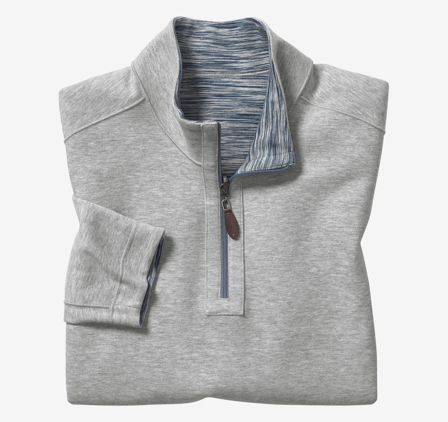 - Soft cotton-blend knit reverses from a rich space-dyed pattern to a heathered knit.