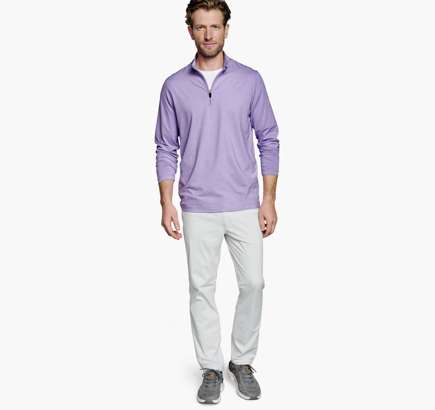 - Quarter-zip placket.